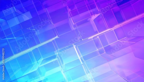 futuristic transparent cube structure with neon gradient lighting, abstract digital background for technology and innovation