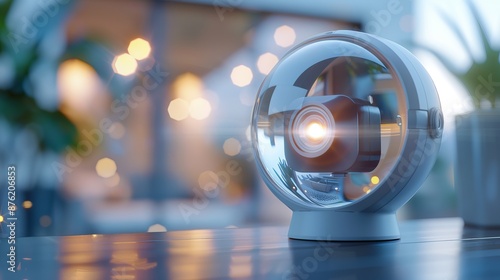 Futuristic transparent globe lamp with blurred background, showcasing warm ambient lighting, perfect for modern home decor and technology themes.