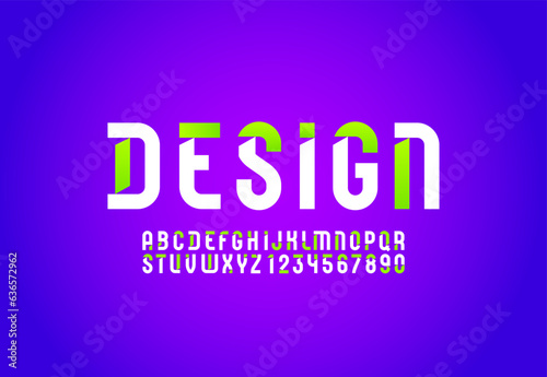 Futuristic trendy font, sci fi display stencil alphabet, modern geometric modular letters and numbers, vector illustration 10EPS