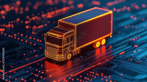 Futuristic Truck Model on Circuit Board Background with Glowing Patterns and Digital Technology Feel