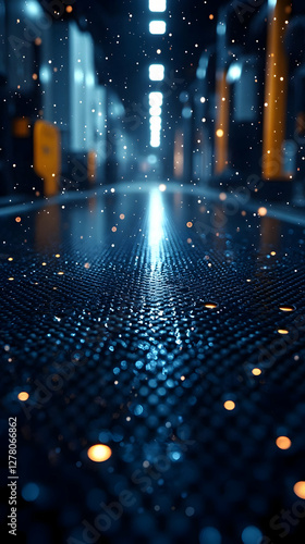 Futuristic Tunnel with Dotted Surface and Blue and Yellow Lighting Effects for Technology Background
