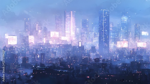 Futuristic urban landscape high-tech metropolis digital cityscape alternate future aerial view urban development