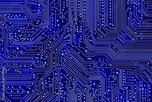 Futuristic vector illustration of a blue circuit board with intricate digital tech elements, perfect for advanced technology backgrounds.