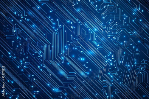 Futuristic vector illustration of a blue circuit board with intricate digital tech elements, perfect for advanced technology backgrounds.