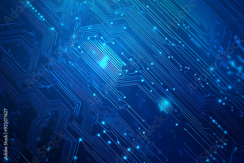 Futuristic vector illustration of a blue circuit board with intricate digital tech elements, perfect for advanced technology backgrounds.