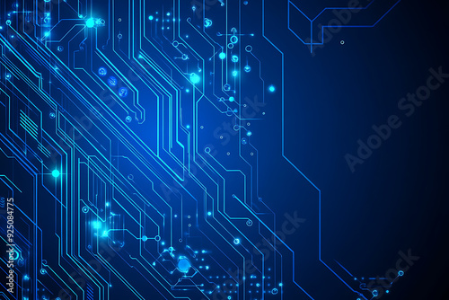 Futuristic vector illustration of a blue circuit board with intricate digital tech elements, perfect for advanced technology backgrounds.