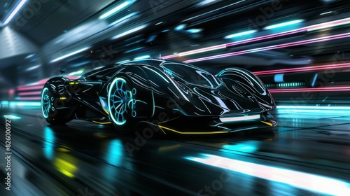 futuristic vehicle with sleek aerodynamic lines and neon light highlights
