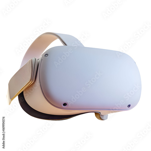 Futuristic virtual and augmented reality headset, isolated on white, symbolizing immersive digital experiences, advanced technology, and interactive entertainment
