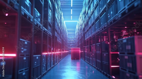 Futuristic Warehouse Storage with Neon Lights and Shadows
