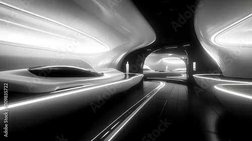 Futuristic White And Black Interior Space Design
