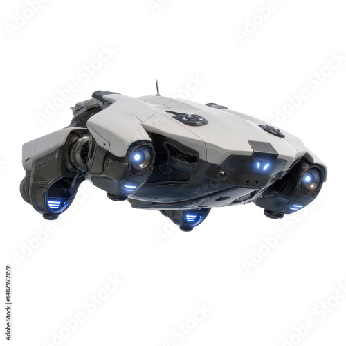 Futuristic White Spaceship Hovering in Isolation