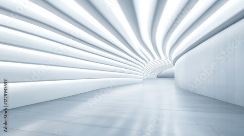 Futuristic white tunnel with curved walls and abstract geometric design for modern architectural concept
