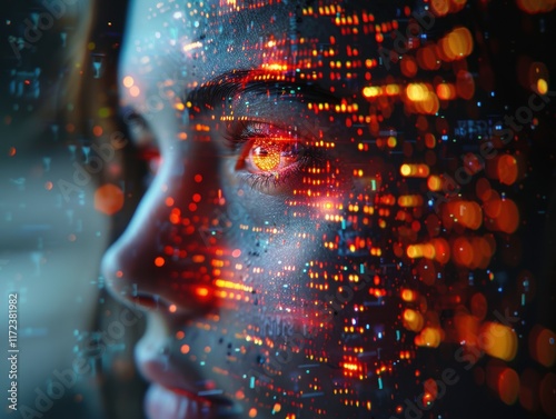 Futuristic Woman Face AI Digital Art Technology Data Network Glow Abstract Cyberpunk 8K HD