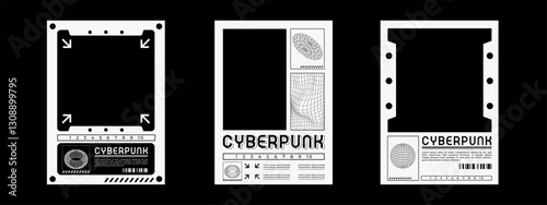 Futuristic y2k technology frame for design. HUD frames in Ski-Fi style, GUI, FUI. Modern cyber user interface elements.