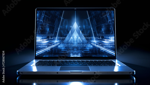 Futuristischer Laptop mit Lichtreflektionen, Sicherheit am Computer, Cyber Security