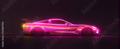 Futuristischer Neon-Sportwagen in Pink mit Leuchteffekten - KI generiert