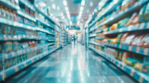 Fuzzy perspective of an unoccupied supermarket aisle without people 02