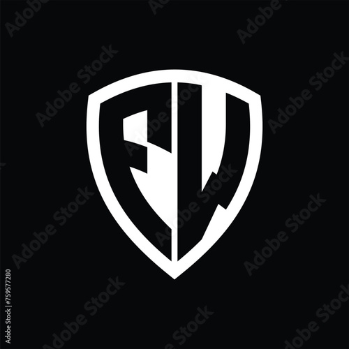 FW monogram logo with bold letters shield shape with black and white color design