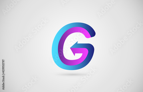 G arrow alphabet letter logo for business and company in blue and pink color. Corporate brading and lettering icon with gradient design