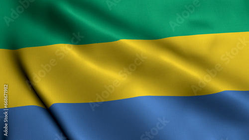 Gabon Flag. Waving Fabric Satin Texture of the Flag of Gabon 3D illustration. Real Texture Flag of the Gabon