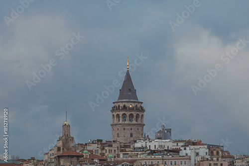 Galata Tower with overcast sky. Visit Istanbul concept