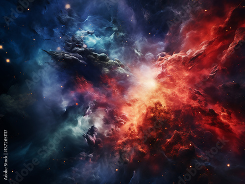 Galaxy collision mixing stars creating chaotic forms and demonstrating new changes