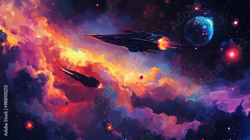 Galaxy flat design side view galactic war theme water color vivid. Galactic War. Illustration