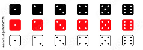 Game dice graphic icons set. Dice from one to six. Simple dice shapes.