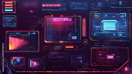 Game stream frames, Glow theme for live conference of gaming streamers, hud frame twitch streaming media gamer broadcast webcam box video screen, garish vector illustration of game screen futuristic