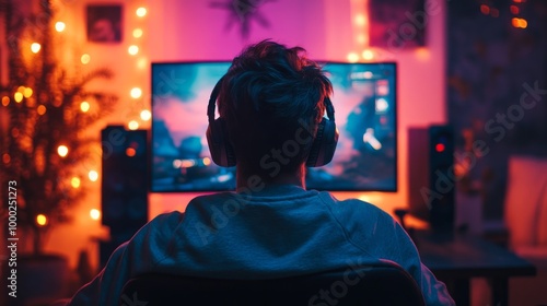 Gamer Immersed in Colorful Setup
