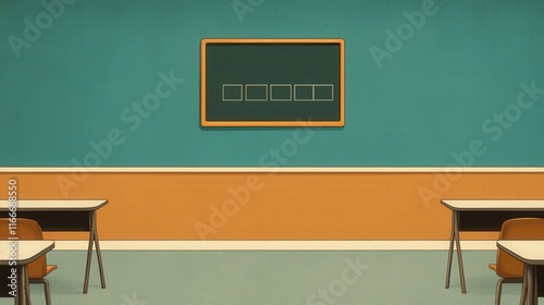 Gamification Classroom interior with green walls, wooden desks, and a chalkboard.