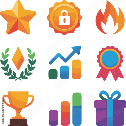 Gamified Achievements – Vibrant Icons for Success and Progress Tracking