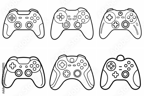 Gaming Controller Outline Coloring Page - Line Art Drawing Set on White Background