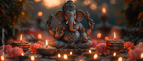 Ganesha Idol Serenely Sitting Among Diwali Lights