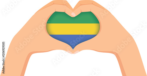 Gapon independence day illustration. Hands forming a heart shape with the flag inside.