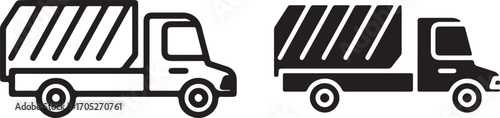 Garbage truck thin line icon set. Garbage truck icon set on white background. Eps 10 stock vector