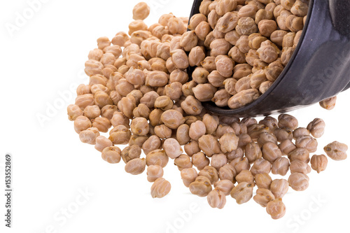 Garbenzo beans in a ceramic bowl isolated on a white background