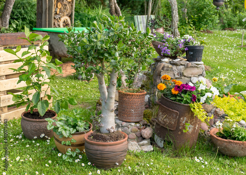 garden flowers in pots, flowering plants and flowers in the summer garden