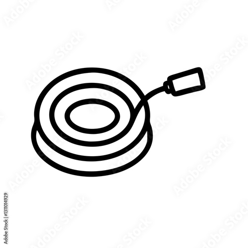 Garden hose icon, minimalist design, black and white, for gardening concept