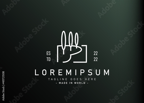 Gardening business logo design. Vector illustration of monoline landscape view of garden. Modern logo design with line art style.