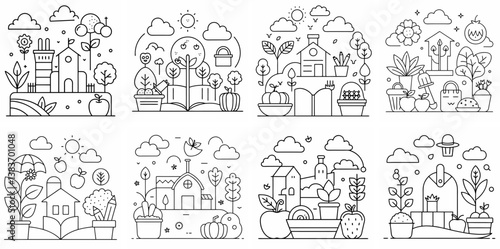 Gardening Farming Outline Coloring Book Page Line Art Drawing
