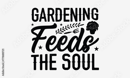 Gardening Feeds The Soul - Gardening T- Shirt Design, Hand Drawn Lettering Phrase Isolated White Background, This Illustration Can Be Used Print On Bags, Stationary As A Poster.