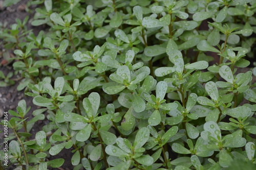 Gardening. Green. Purslane, annual herbaceous succulent plants. Portulaca oleracea