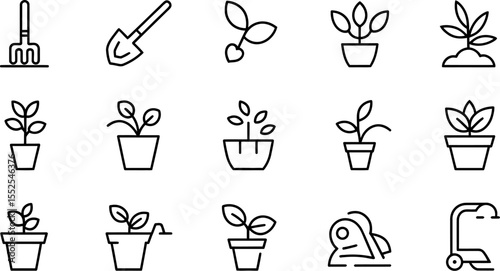 Gardening tools and plants icons vector set for garden care and planting design elements vector illustration editable stock vector illustration