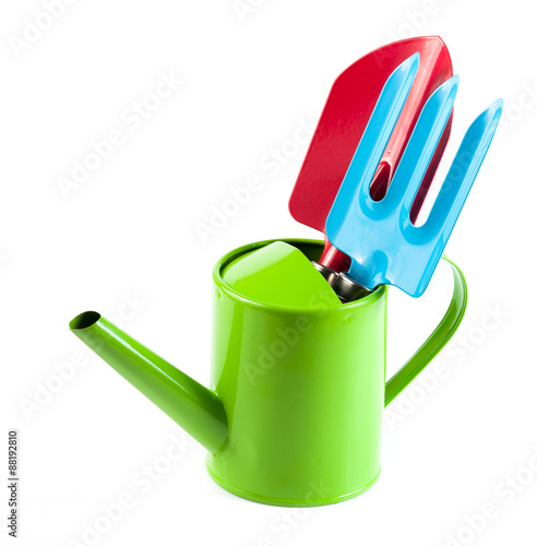 Gardening tools on wooden background