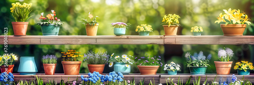 Gardening with Flowers, Spring Blooming, Rustic Wooden Pots, Nature and Beauty