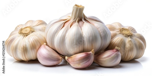 Garlic Bulbs and Cloves on White Background