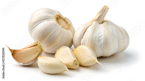 Garlic Bulbs And Cloves On White Background Cooking Ingredient Concept