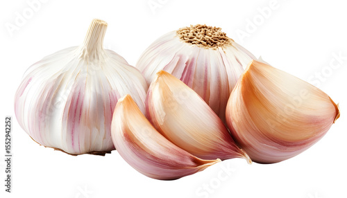 Garlic clove png. Garlic cloves on transparent background. Peeled and unpeeled three garlic cloves no background. Transparent png. Full depth of field