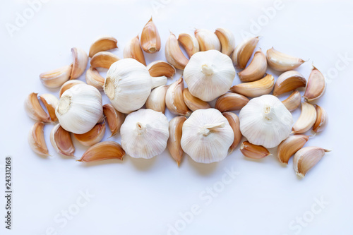 Garlic on white background.